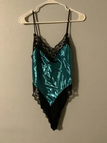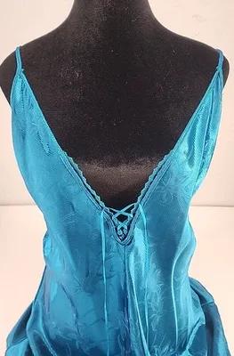 Vtg Lady Cameo L | Teal Jewel Tone Fairy Satin Lingerie Chemise...