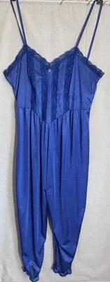 Vintage 70s Lady Cameo Dallas Romper Blue Small Pants Tank Lace...