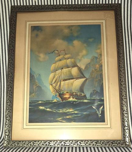 VTG R ATKINSON FOX 14" FRAMED NAUTICAL Rounding the Capes SHIP...
