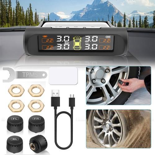 Wireless Solar TPMS LCD Car Tire Pressure Monitoring System +4...