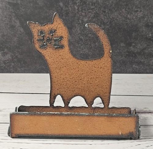 Rustic Metal Cat Silhouette Desk Holder 3.25" Business Card...