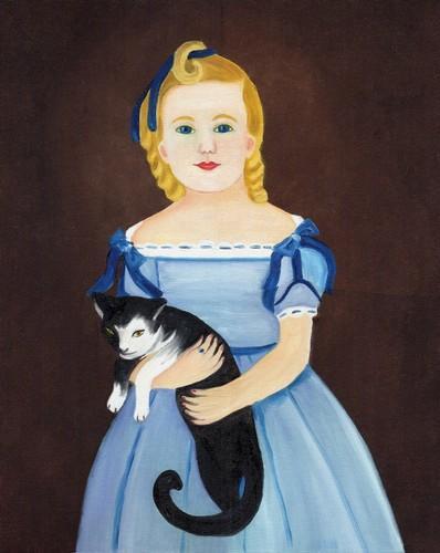OrIgInAl FoLk ART OiL PaInTiNg GiRl BlAcK WhItE CaT EaRlY...
