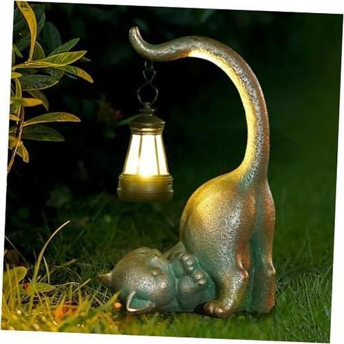 Cat Garden Statue Outside Decor with Lantern for Yard Art Lawn...