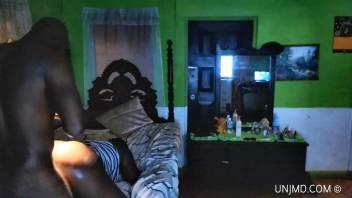 Young amateur interracial couple excited to be catched by...