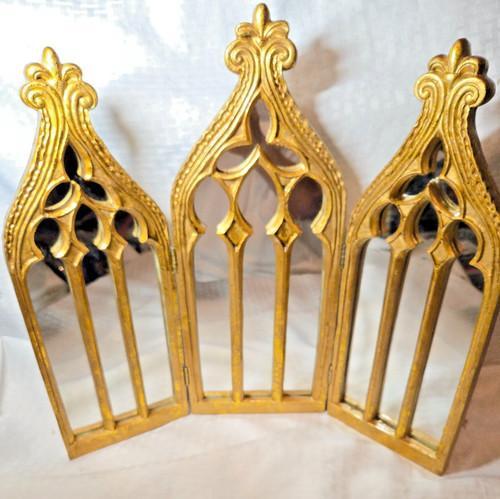 Gothic Cathedral Triptych Gold Display Mirrors - Tri-fold...