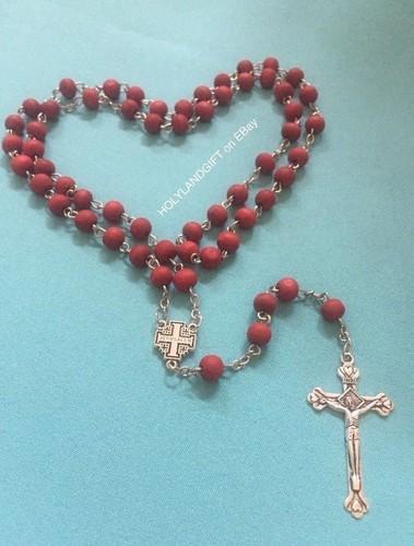 JERUSALEM Rose Smell Wood Catholic ROSARY Bead Necklace Cross...
