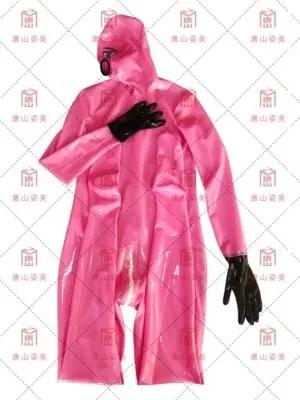 Latex gummi catsuit codpiece hidden two sheath transparent...