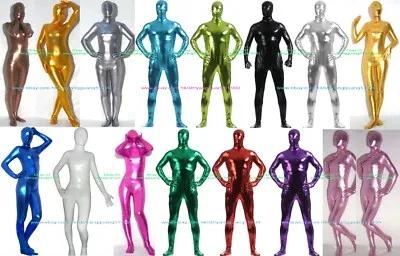 Unisex Shiny Metallic & Spandex Silk Suit Catsuit Costumes With...