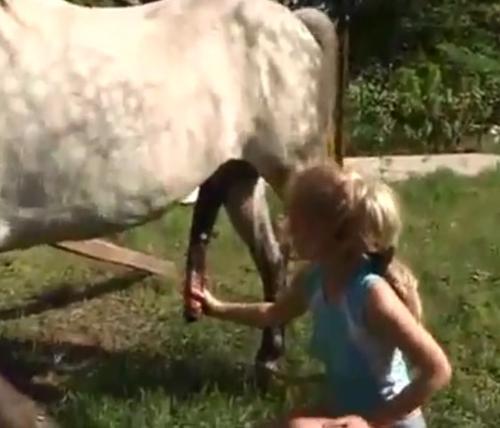 Novinha batendo punheta e fazendo oral no cavalo - Zoofilia...