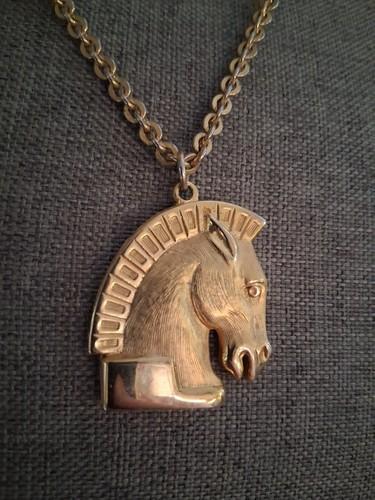 Horse head signed CCi pendant necklace 20", vintage, equestrian