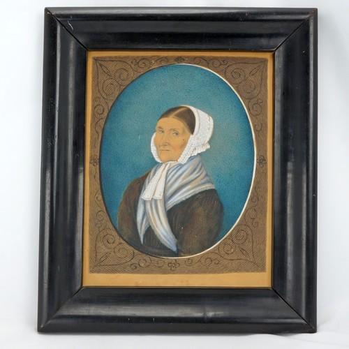 Antique Primitive Portrait Watercolor Gouache Early 19th Century