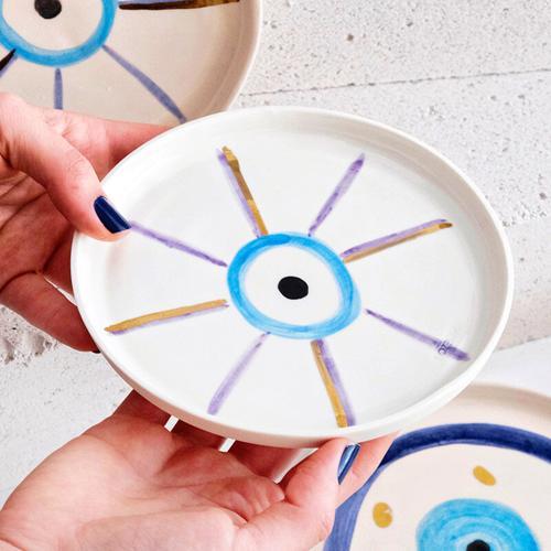 Kırmızı Nazar Boncuğu Desenli Altın Dekorlu Stoneware Tabak...