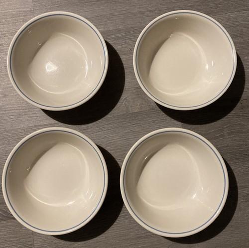 4 Corelle Cereal/Soup Bowls Sandstone With Blue Ring on Rim