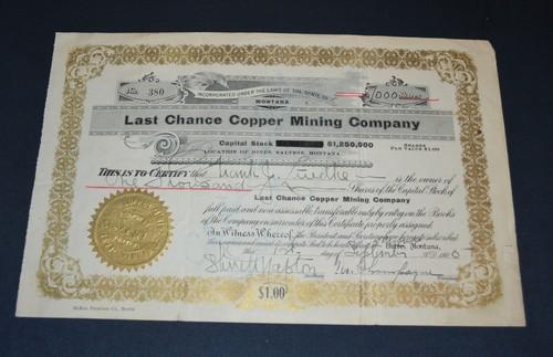 Last Chance Copper Mining Company 1905 stock certificate...