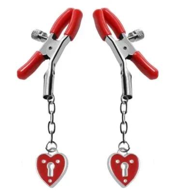 Master Series Crimson Tied Charmed Heart Padlock Nipple Clamps...