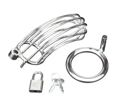 Stainless Steel Male Chastity Device Belt Bird Cage Lock Cock...
