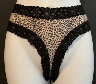 VICTORIA’S SECRET LEOPARD PRINT BLACK LACE CHEEKY PANTY SIZE...