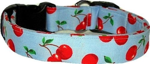 Big Red Cherries on Blue Custom Handmade Dog Collar