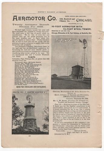 Antique 1895 Print-ad, Aermotor Co. Chicago IL, Railroad Choice...