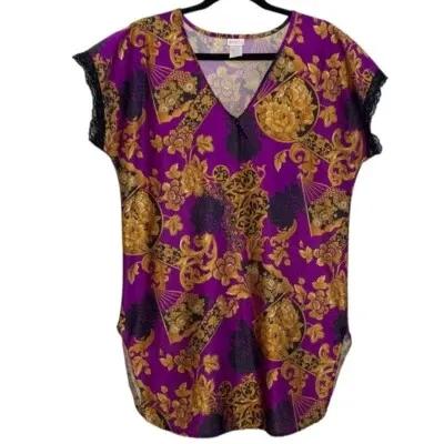Vintage Nightie Womens Small Purple Gold Floral Chinois Short...