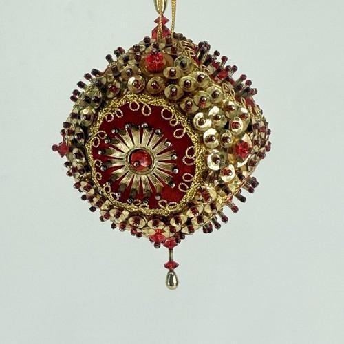 Vintage Handmade Satin Christmas Ornament Push Pin Ball Beaded...