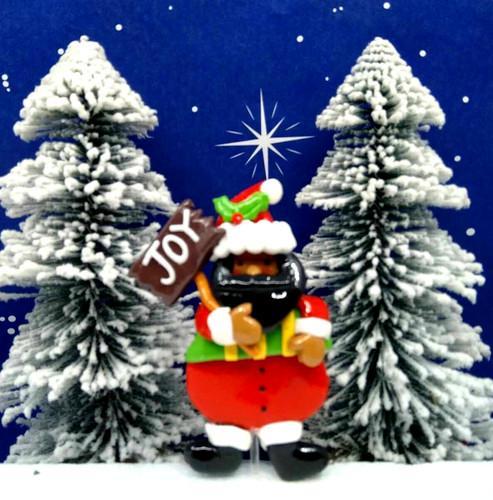Black Santa w Joy Sign Topper for Ceramic Christmas Tree...