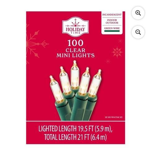 Holiday Time 100 Clear Mini lncandescent Christmas Tree Lights...
