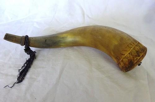 Revolutionary or possibly Civil War Scrimshawed Naval Powder...