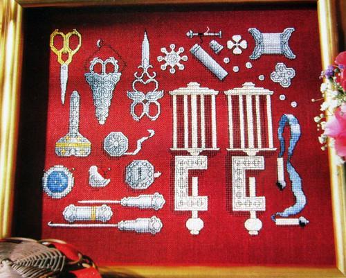 Antique Needlework Tools Scissors Silk Winders Clamps CROSS...