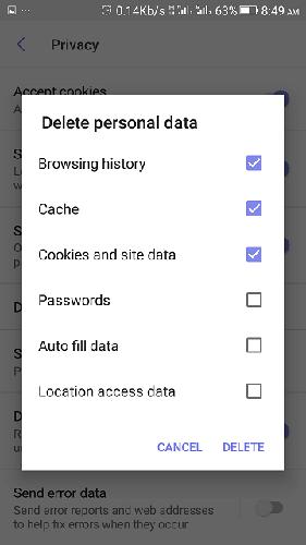 Clear Cache, History and Cookies on Android