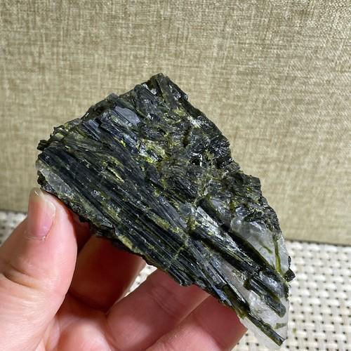 179g Green Tourmaline Crystal with Epidote Cluster Mineral...