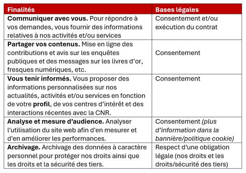 Vos données personnelles | CNR N'CO , Le portail des offres CNR
