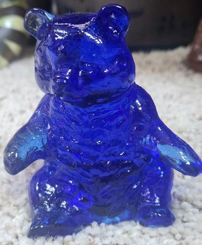 Vtg Mosser Glass 3-3/4" Tall TAWNY BEAR Cobalt Blue Figurine