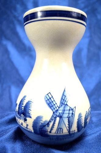 Vtg Cobalt Delft Blue Tulip Bulb Vase With Dutch Windmills Sail...
