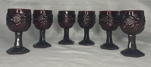 Vintage Set of 6 Avon Cape Cod Ruby Red Wine Glasses