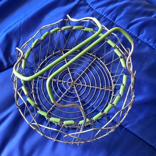 VTG Collapsible Wire Egg Basket w/Green Trim French Style...