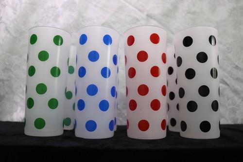 8 Lots of Dots Frosted Glass Tumblers Tom Collins Zombies Green...