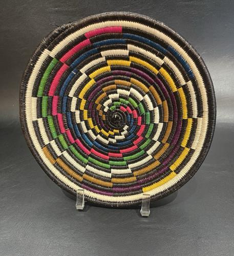 African Hand Woven Basket Bowl Senegal Colorful 14.25”