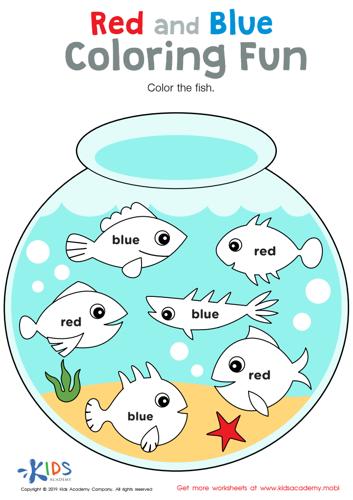Red and Blue Coloring Fun Worksheet: Free Coloring Page...