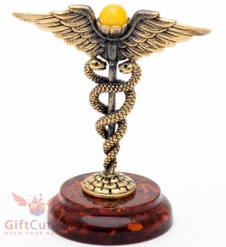 Brass Amber Caduceus Staff of Hermes God of Commerce Mercury...