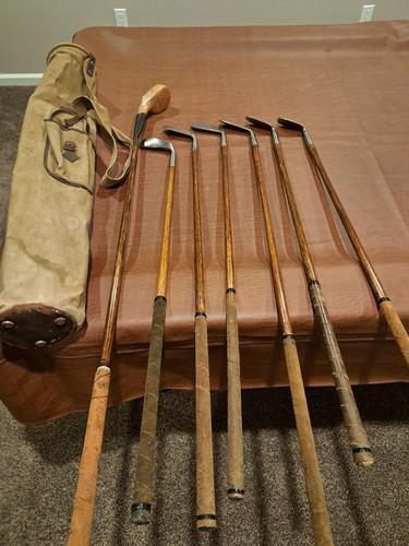 Hickory Wood Shaft Golf Club Compiled Set, Irons & Golf Bag...