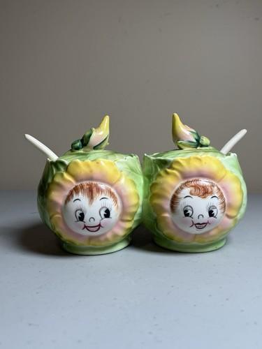 Vtg PY Japan Ceramic Anthropomorphic Condiment Jelly Jars...