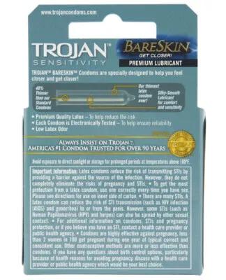 Trojan Sensitivity Bareskin Thinnest Sensitive Lubricated Latex...