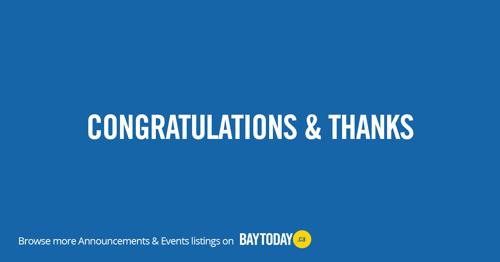 North Bay Congratulations and Thank Yous - North Bay News