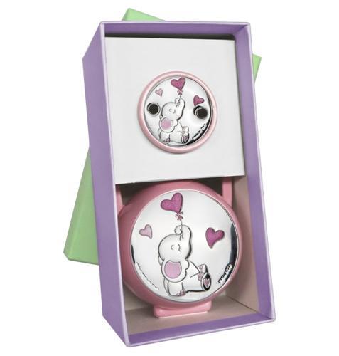 CONJUNTO CHUPETERO Y PORTACHUPETE ROSA BEBÉ LAMINADO EN PLATA...