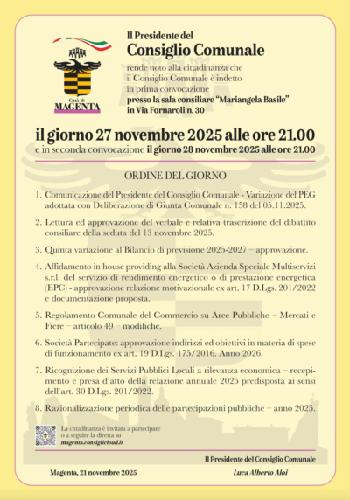 Magenta, Consiglio Comunale convocato per il 27 novembre alle...