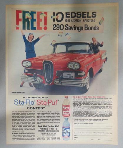 Ford Motors Ad: Edsel Citation Hardtop Contest for 1958! Size...