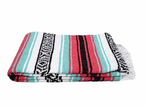 Mint and Coral Pink Mexican Blanket Vintage Style Serape...