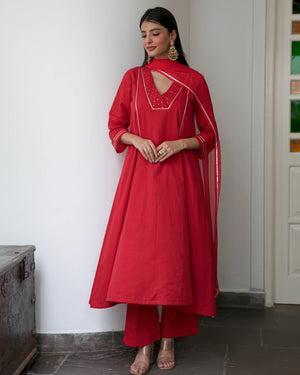 Red Cotton Suit Set