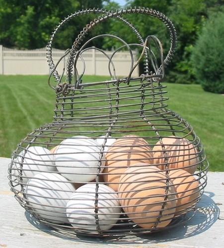 Vintage Antique French Wire Metal Egg Basket Country Farm House...